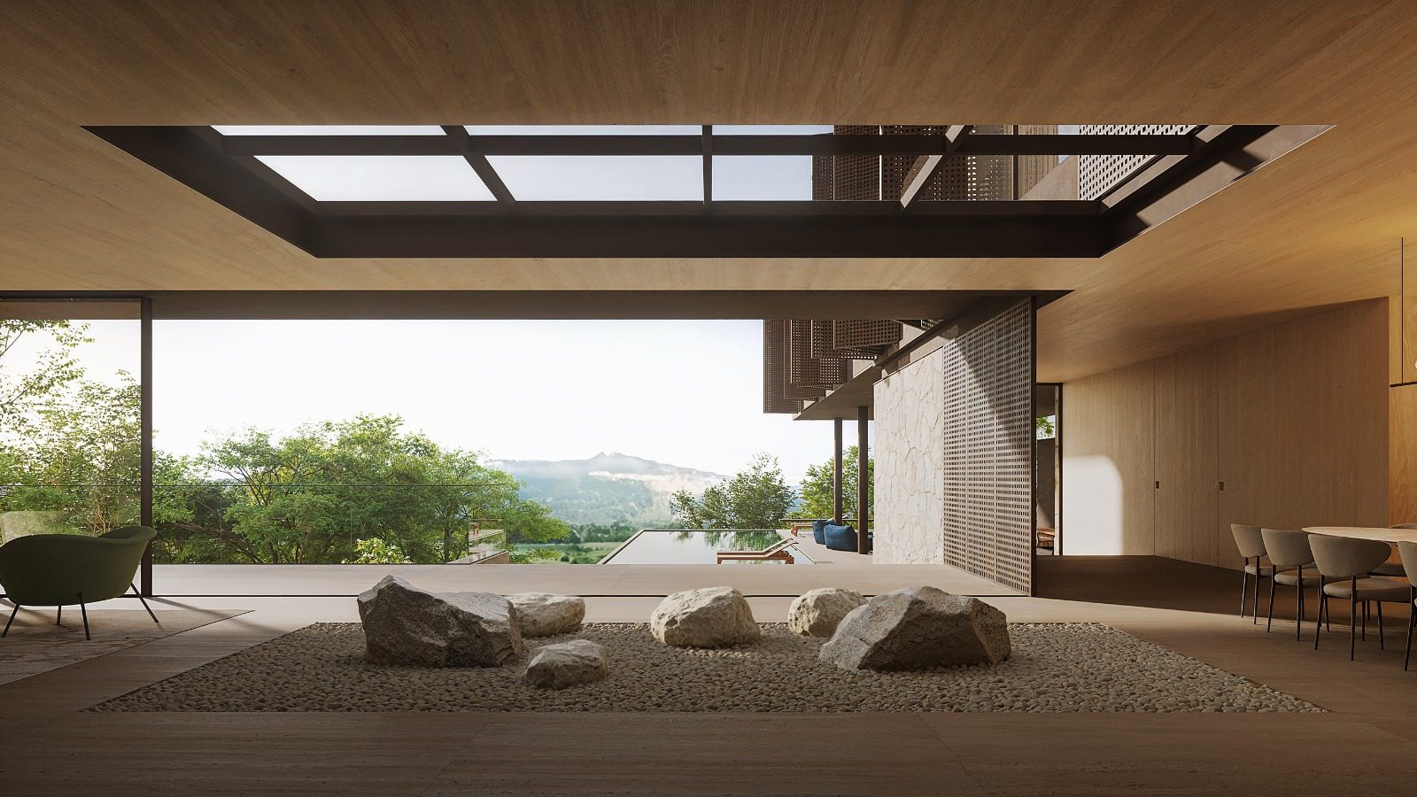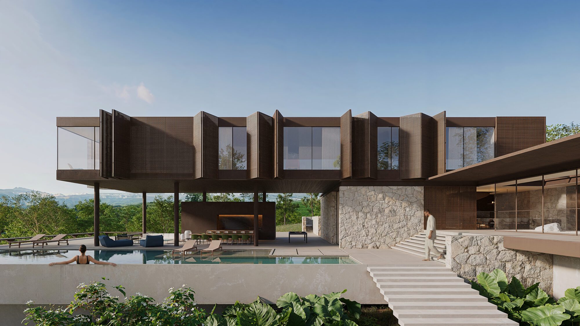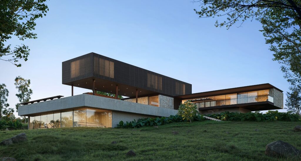 Casa Horizonte is born from the desire for an architecture that stretches across the land, following the natural movement of the earth until it blends into the landscape. More than occupying, it rests upon the ground. Its placement respects the rhythm of the terrain and translates, through continuous lines and planes, the gesture of contemplating the horizon.