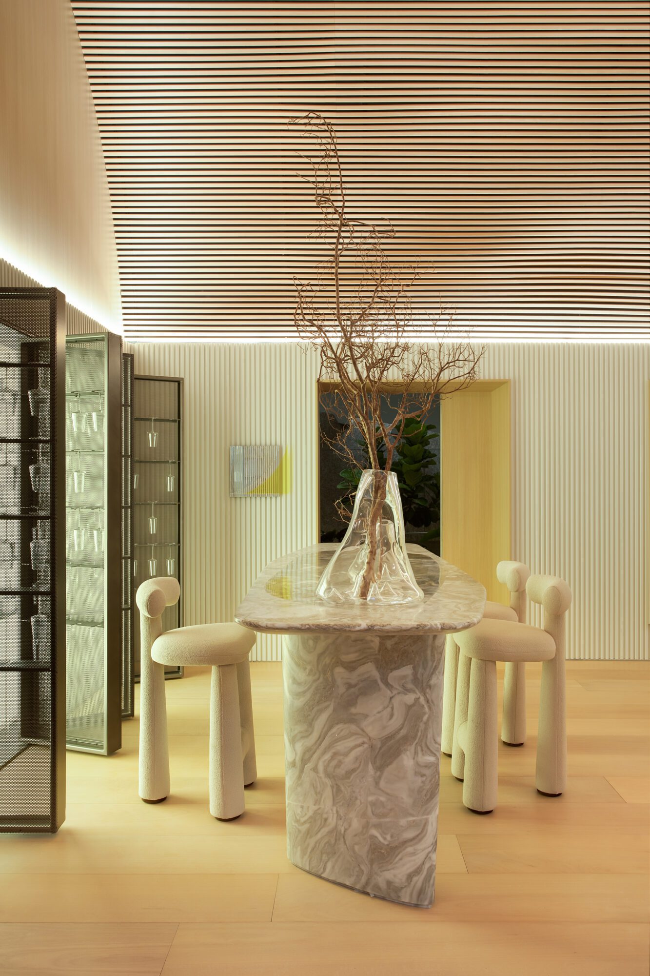Originally conceived for the brand’s showcase at its Dubai showroom in the United Arab Emirates, the Maxx quickly gained autonomy. Its design blends form and comfort with rare ease. “Every curve was crafted to follow the body and deliver exceptional comfort, even in a counter-height stool. It’s something you don’t just see — you feel,” explains Fernanda.
