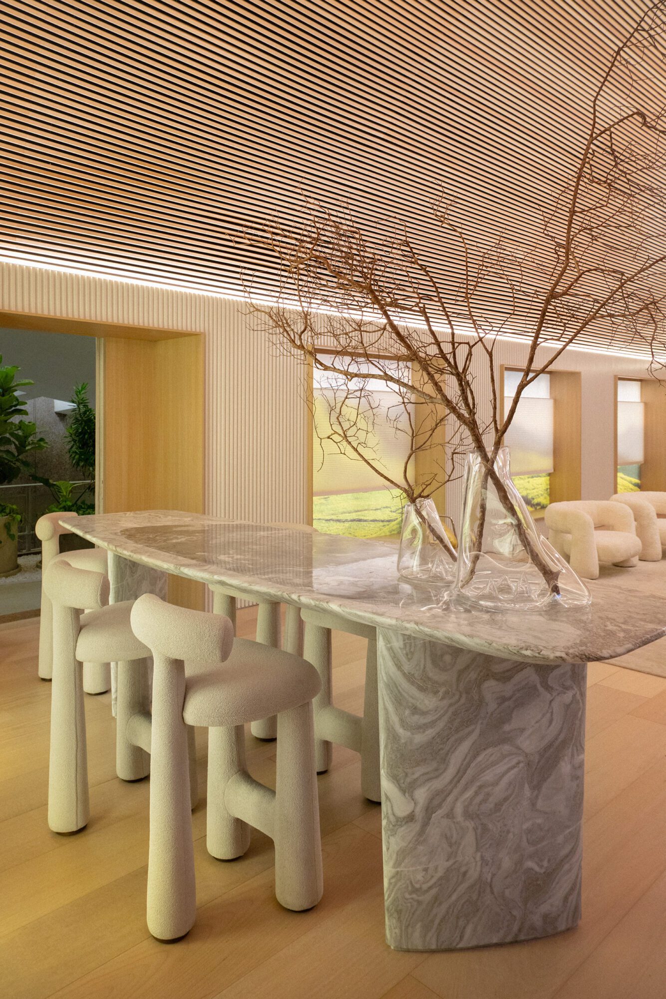 The upholstery fabric also plays a key role in the final experience. Along with its organic lines and generous cushioning, the material choice was made with a strong sensory focus. “I wanted something that would catch the eye but also invite touch, reinforcing that sense of absolute comfort,” the designer notes.