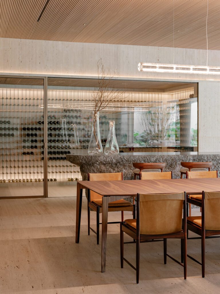 Em projetos residenciais de alto padrão, a adega deixa de ser um setor escondido da casa e passa a ocupar locais de destaque, próximos a áreas sociais, gourmet ou lounges privativos. Ao fazer isso, ela se torna um local de convívio e celebração. O vinho é uma bebida que carrega histórias, culturas e trajetórias pessoais, e a adega, quando projetada com refinamento e tecnologia, torna-se o palco perfeito para preservá-las e compartilhá-las.