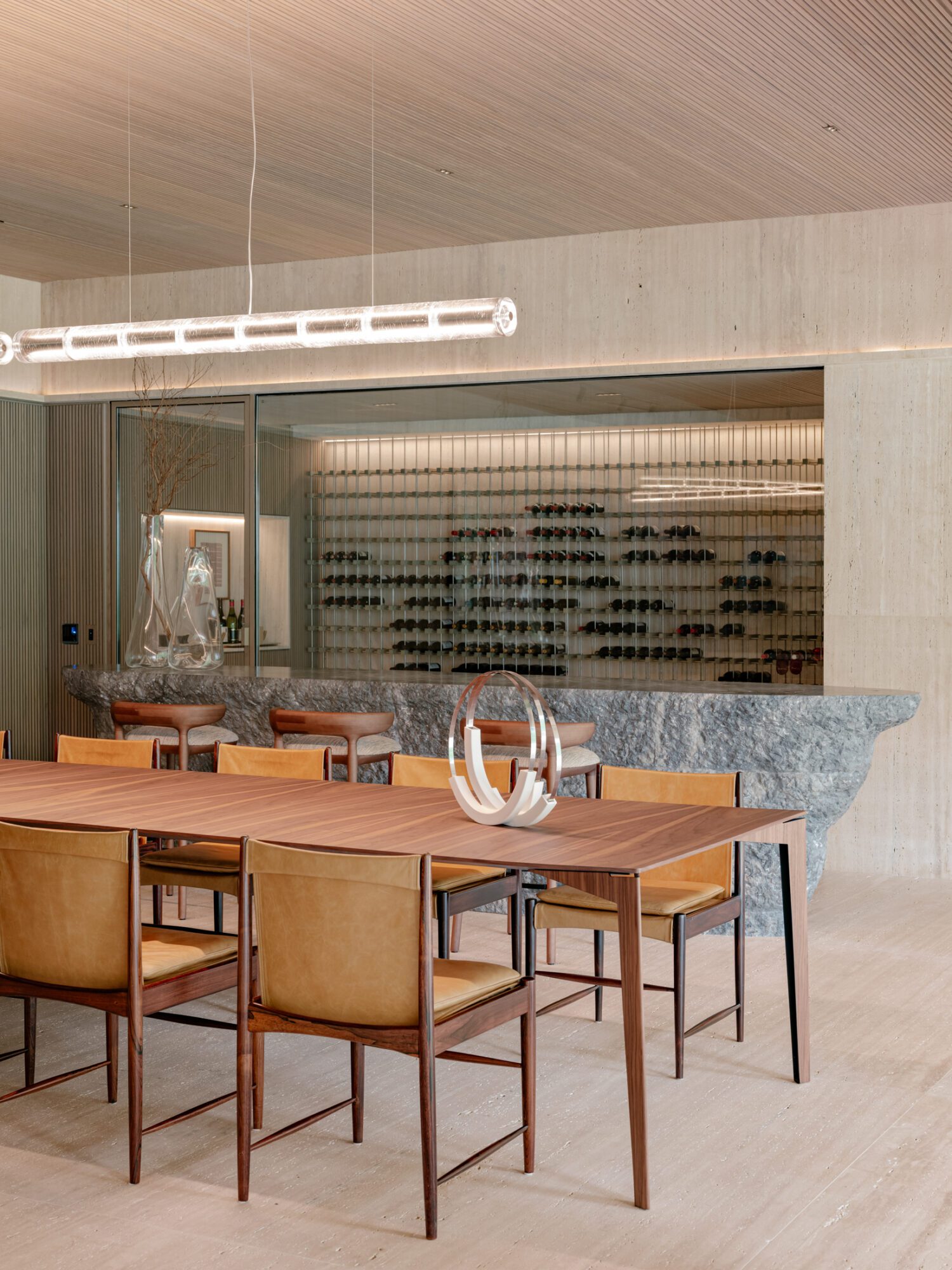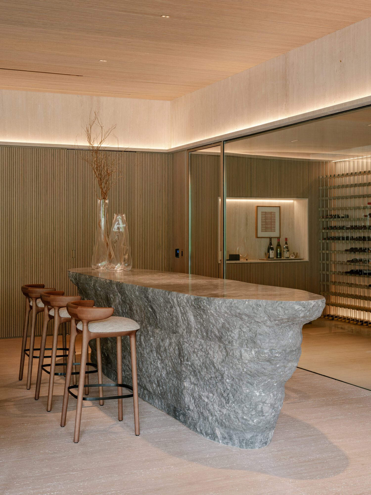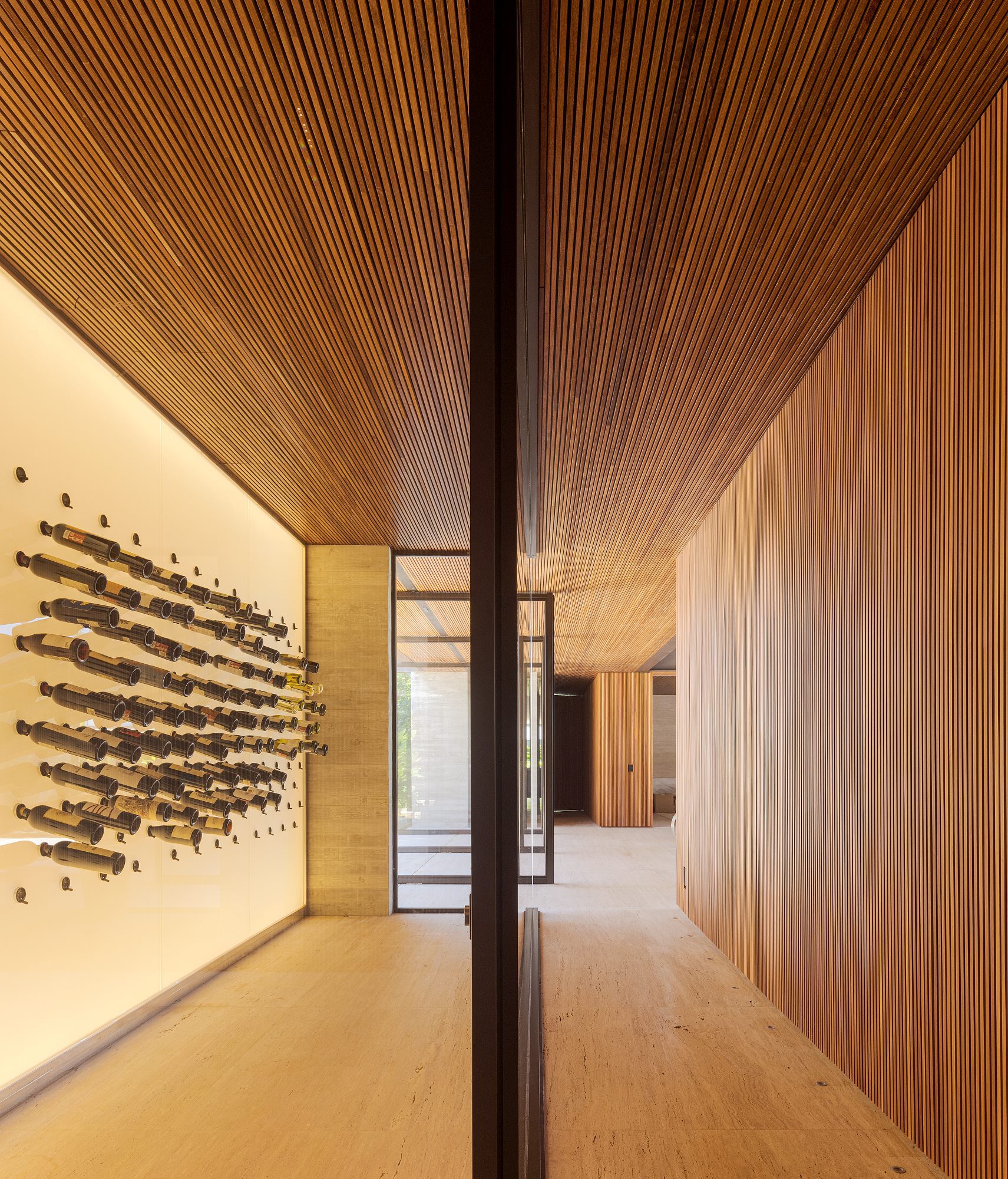 Em projetos residenciais de alto padrão, a adega deixa de ser um setor escondido da casa e passa a ocupar locais de destaque, próximos a áreas sociais, gourmet ou lounges privativos. Ao fazer isso, ela se torna um local de convívio e celebração. O vinho é uma bebida que carrega histórias, culturas e trajetórias pessoais, e a adega, quando projetada com refinamento e tecnologia, torna-se o palco perfeito para preservá-las e compartilhá-las.